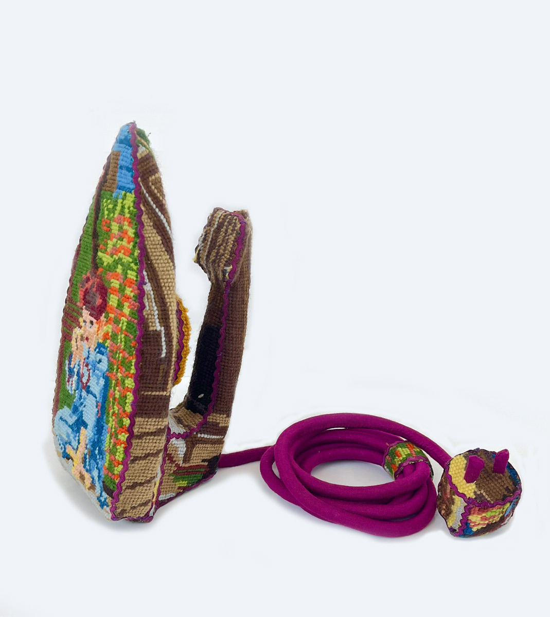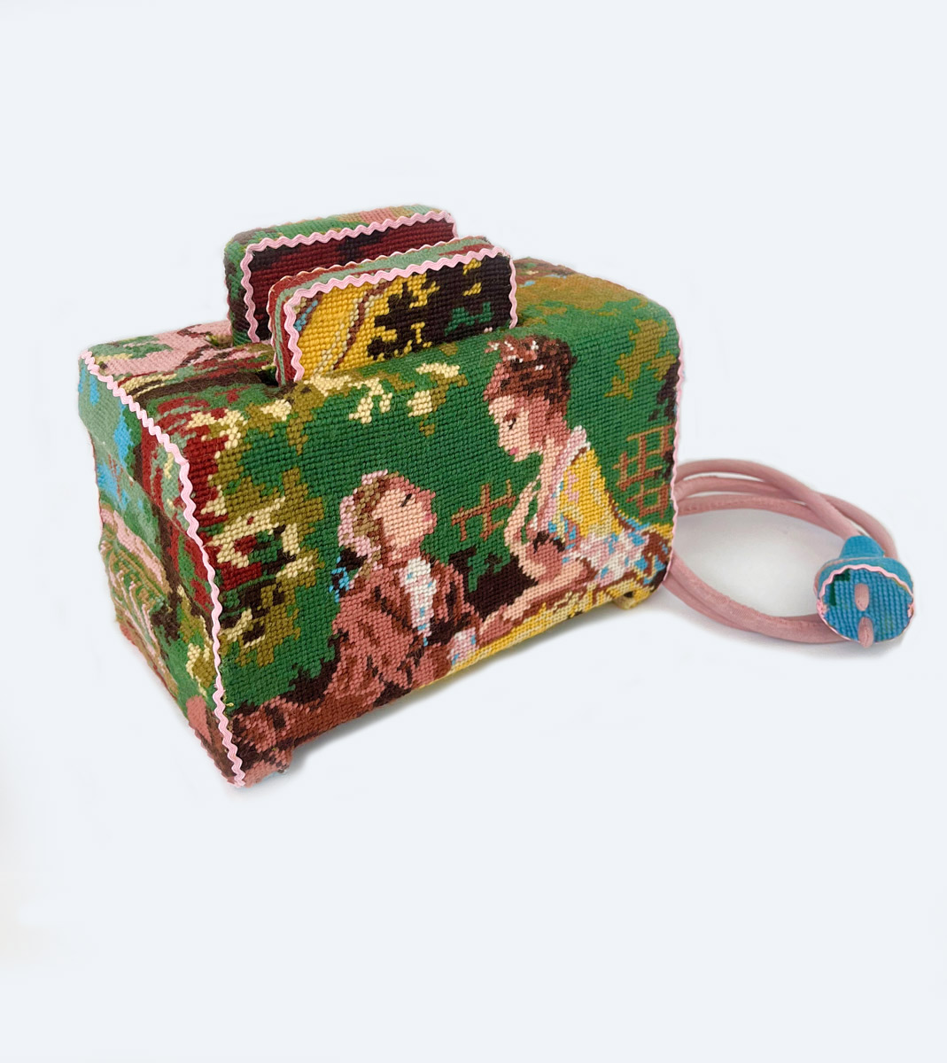During those years, I often visited flea markets to buy props for the various Opera performances and came across the embroidery. After upholstering some chair seats and mirror frames, I started thinking about dressing in something much less expected and apart objects. There and then the idea was born to dress up my old broken vacuum cleaner. The objects I work with are usually from the 70s. I started buying and working with household appliances/items linked to female unpaid domestic work, but I have also dressed sports equipment and tools.
